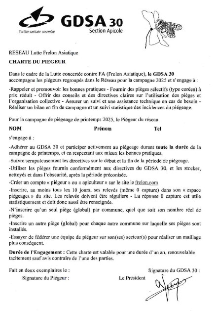 Vous souhaitez rejoindre le réseau « Piègeur » de Frelon Asiatique du GDSA30 ?